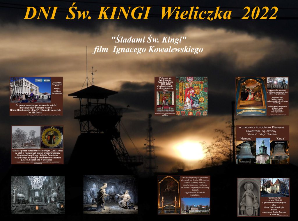 Ignacy Kowalewski, wielicki pasjonat historii i jej upamiętniania filmami i muzyką, podjął temat śladów Świętej Kingi dawnych i obecnych, zainspirowany obydwoma rocznicami. To bardzo ciekawe doświadczenie, popatrzenie na Wieliczkę przez pryzmat życia Świętej Kingi i jego owoce. Jedna osoba a uczyniła tyle dobra. Jej śladów jest wiele, naprawdę. Każde pokolenie dodaje coś od siebie, ku Jej pamięci i na miarę swoich czasów. Ten film Pana Ignacego Kowalewskiego jest naprawdę niezwykły. Święta Kinga czuwa. Film opublikowany został na facebooku Panoramy Powiatu Wielickiego 16. lutego 2022r.Bardzo dziękujemy za tę możliwość, oto link: https://m.facebook.com/100063670802469/videos/%C5%9Blady-%C5%9Bwi%C4%99tej-kingi-wielicka-dobrodziejka-za-kt%C3%B3rej-przyczyn%C4%85-zacz%C4%99to-w-wieliczc/918880375452333/